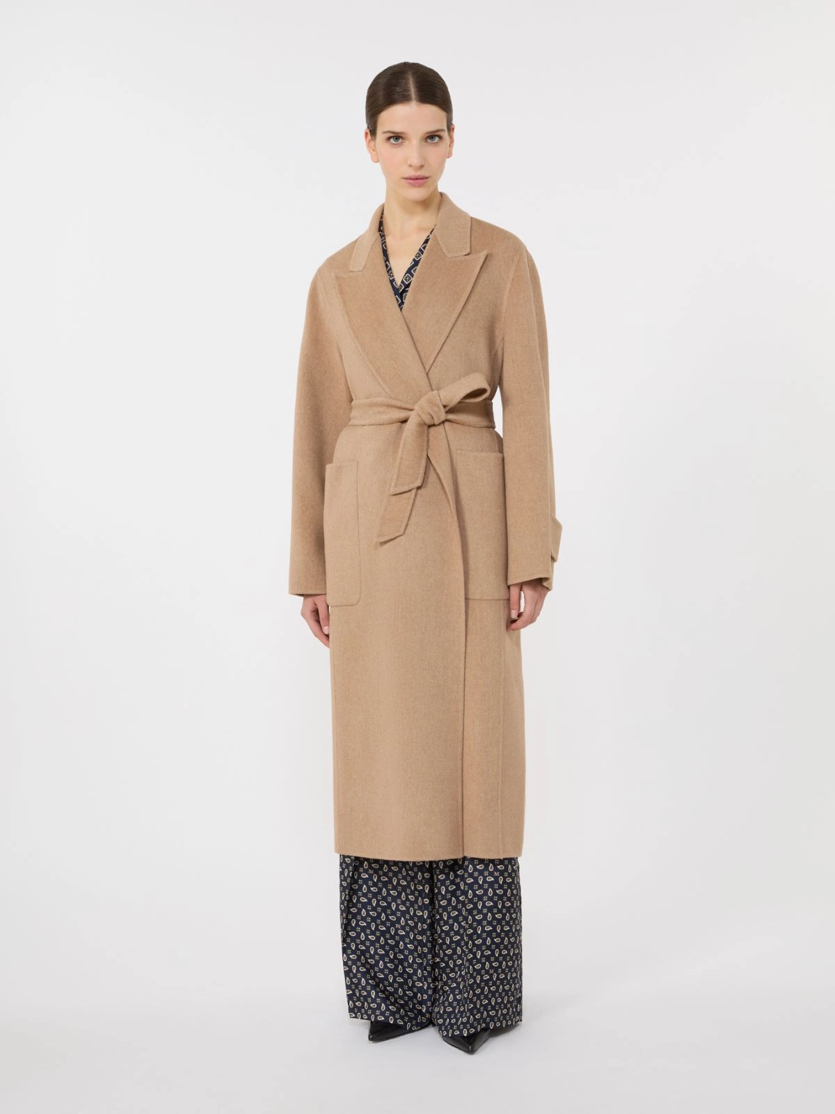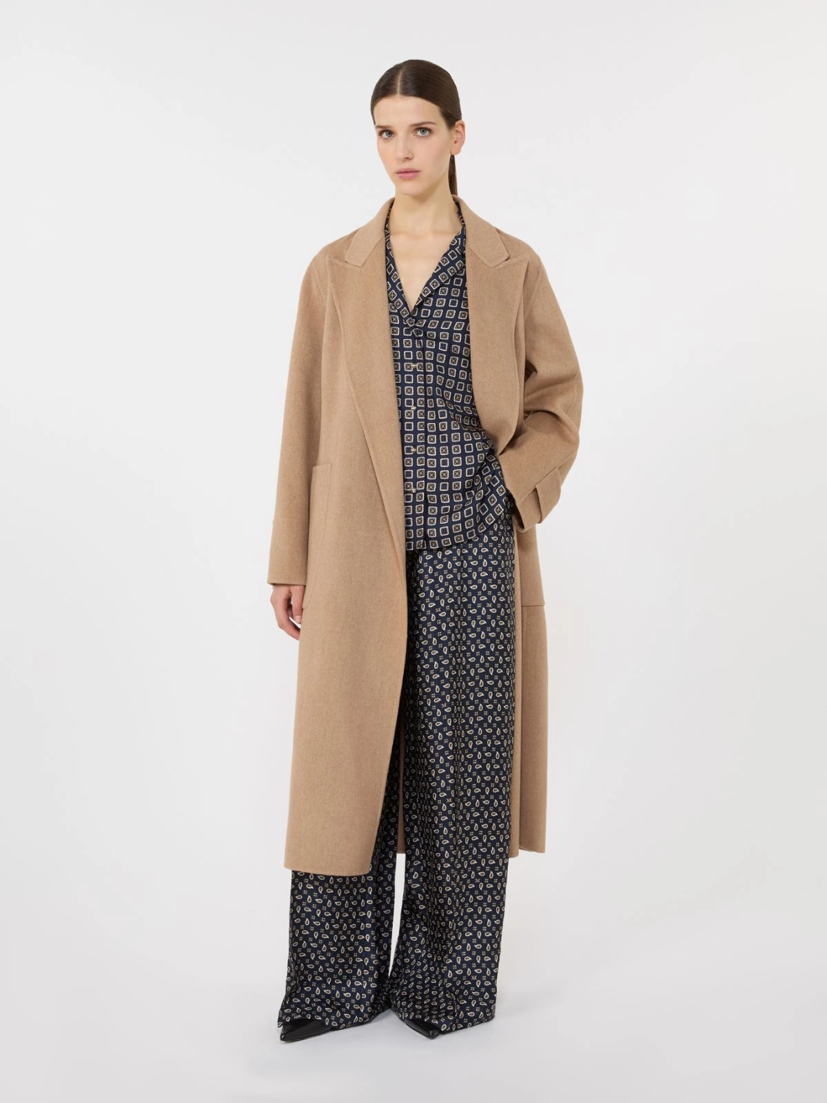 - 수작업으로 봉제한 멜란지 질감의 이중 퓨어 카멜 브로드클로스