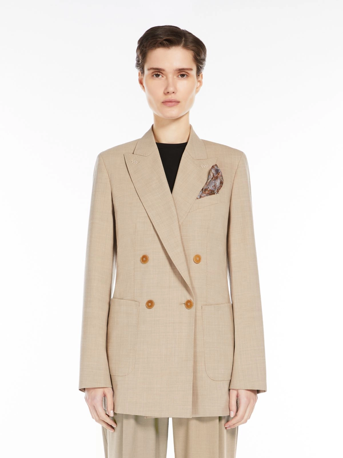 뛰어난 신축성과 편안함을 제공하는 고급 멜란지 울 캔버스 소재의 디컨스트럭티드 더블 브레스티드 블레이저입니다. 가벼운 무게와 캔버스 텍스처로 다양한 용도로 착용할 수 있으며 지지력을 제공하면서도 자연스러운 움직임이 가능합니다. 루스한 실루엣의 캔버스로 처리된 구조로, 피크 라펠 카라, 매니쉬한 가슴 포켓, 앞면 패치 포겟이 있습니다. 대조를 이루는 아이보리 큐프로 원단으로 부분 안감 처리되었으며 밑단 부분은 픽 스티치가 적용되었고 뒷면에 측면 트임이 있습니다. 코로조 소재의 단추를 사용한 잠금 방식입니다.