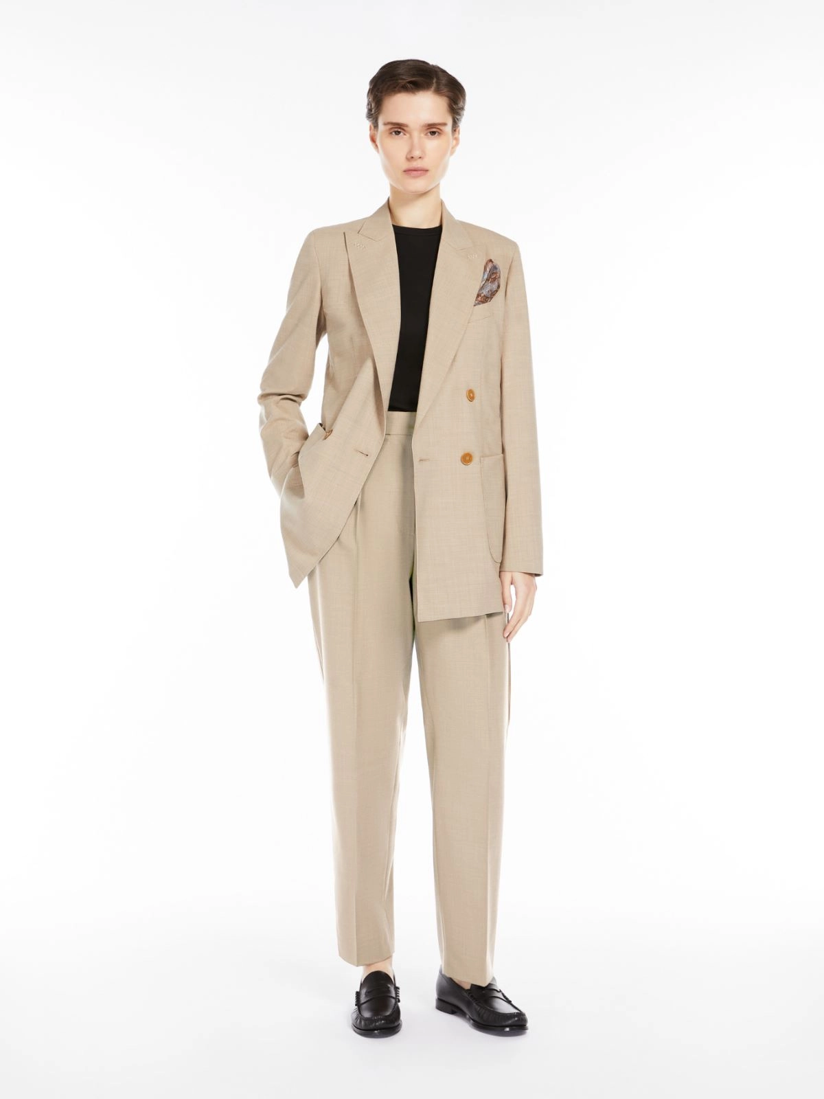원단 96% 버진 울, 4% 엘라스테인; 안감 100% 쿠프로; 소매 안감 65% 비스코스, 34% 폴리에스테르, 1% 쿠프로.