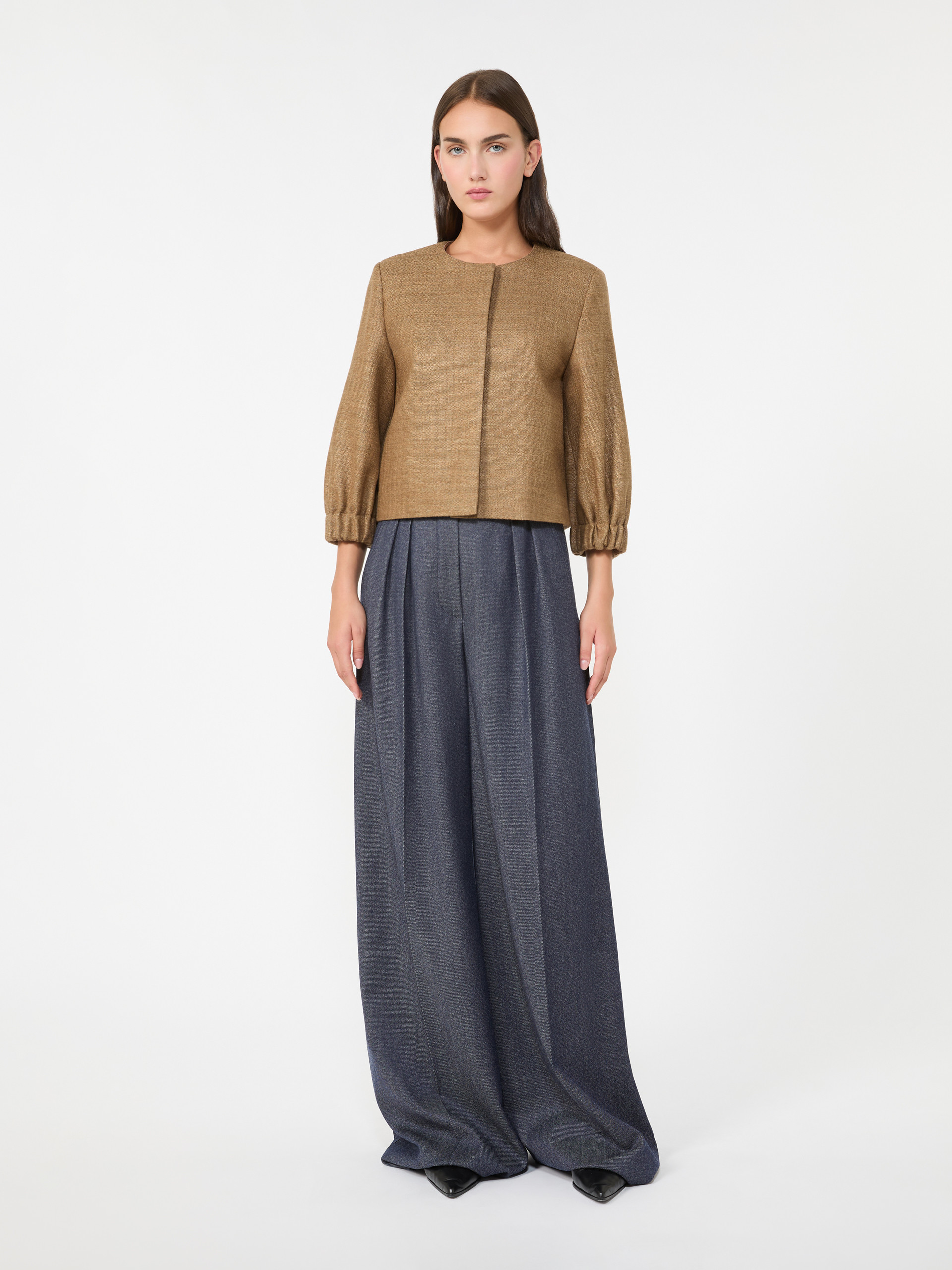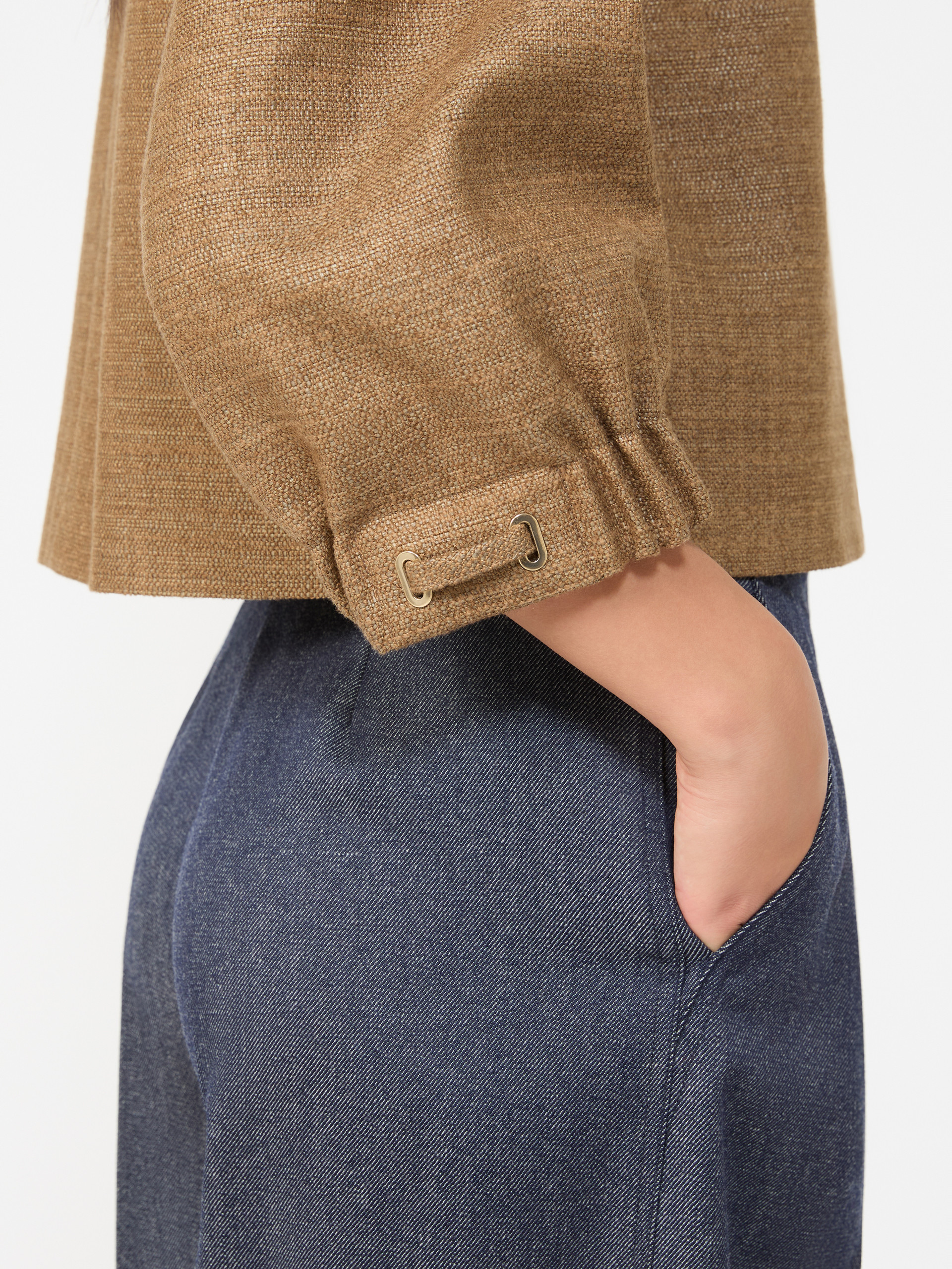 여성스러운 실루엣과 루즈핏 소매의 크롭 자켓입니다.