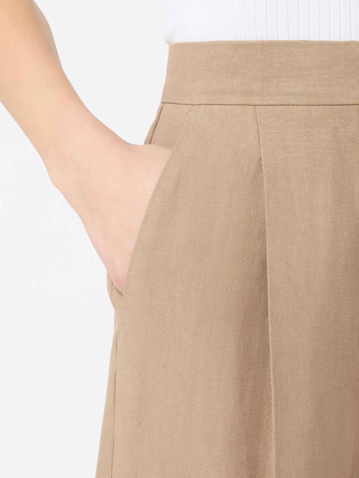 - 프레스드 플리츠 디테일과 바느질로 잡은 허리 뒷면 다트
