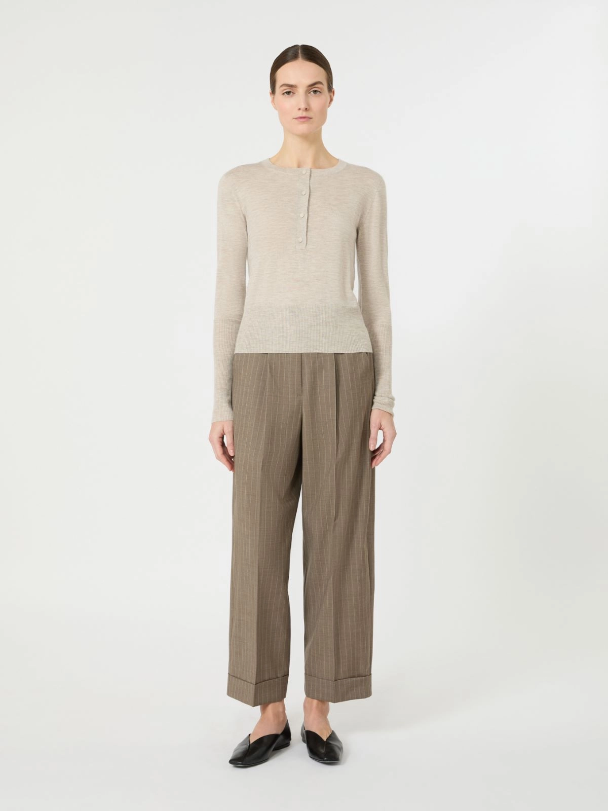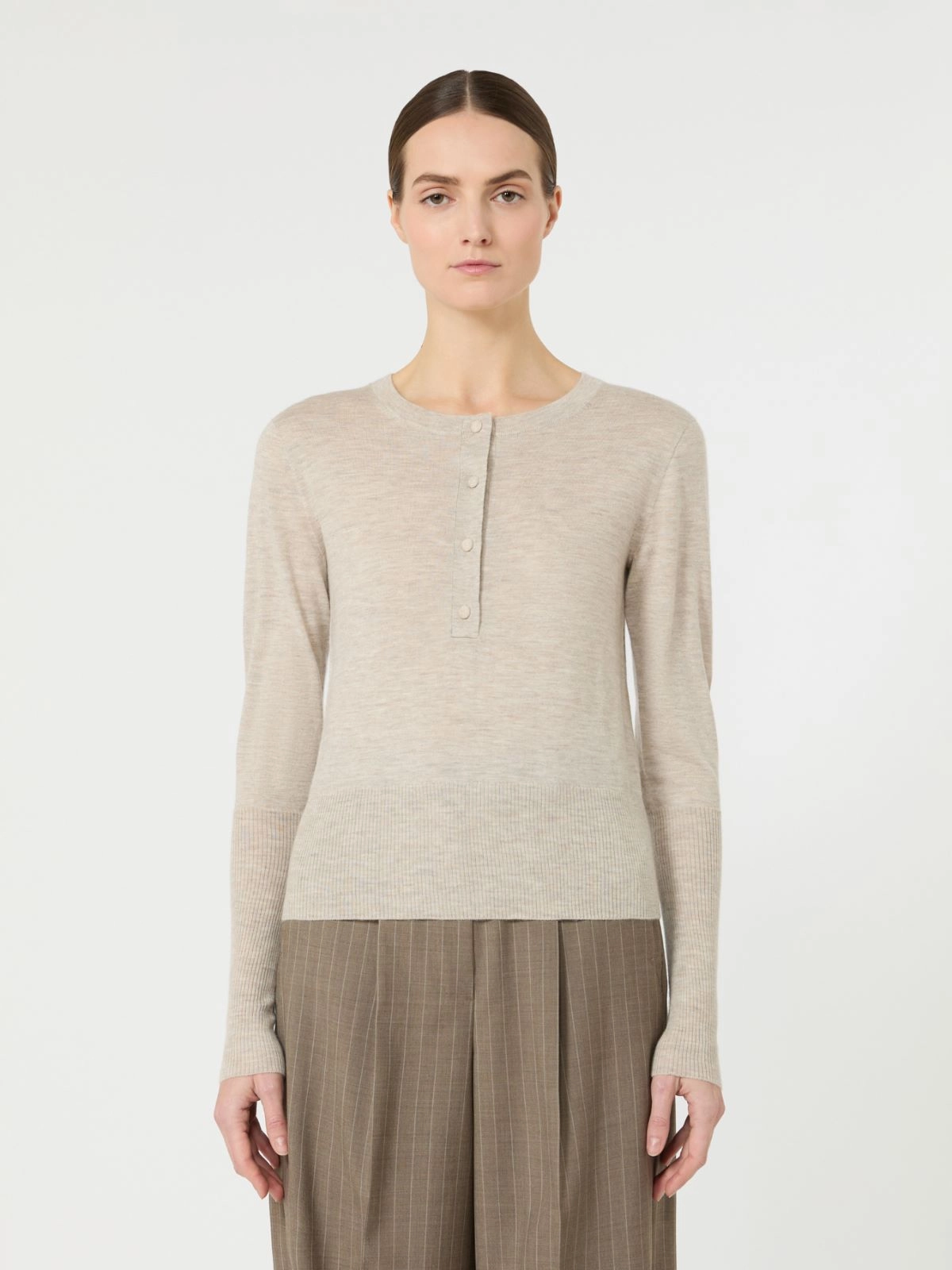 [Max Mara]플레인 니트 패턴과 밑단의 립 조직 마감의 조합이 특징인 심리스 그랜대드 스웨터입니다.