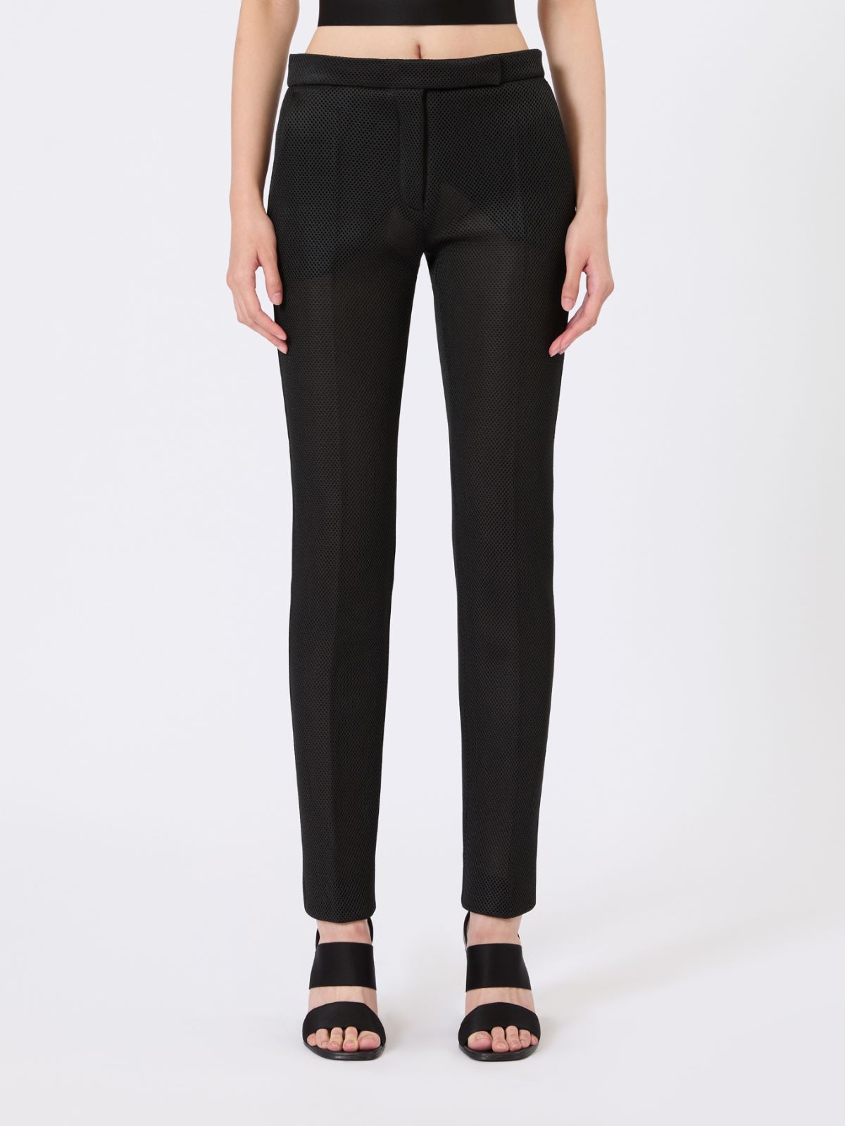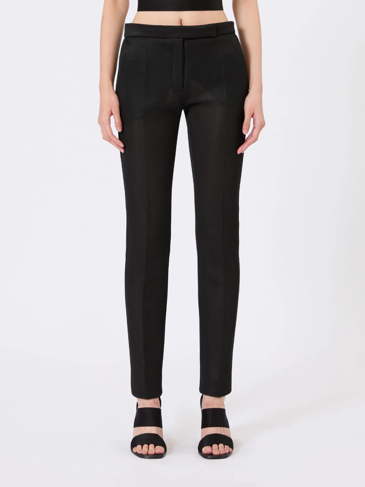 두꺼운 메쉬 소재의 크롭 기장 트라우저입니다.