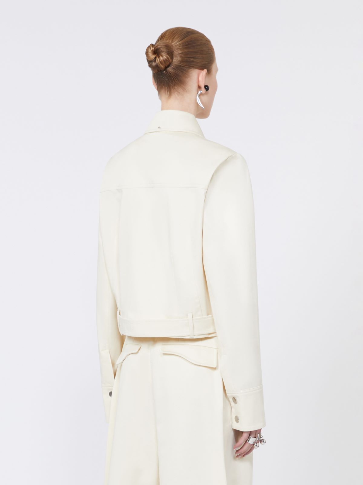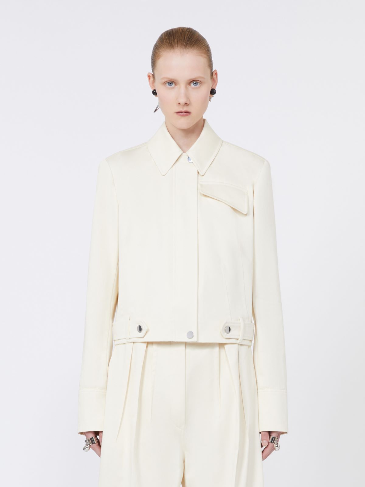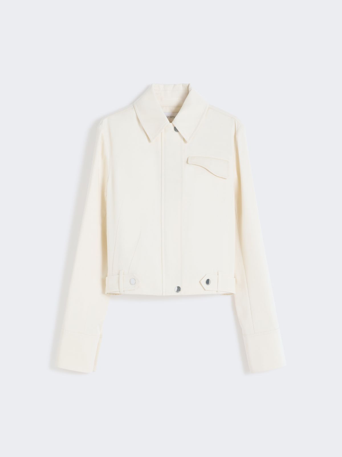 깔끔한 디자인의 캐주얼 숏 자켓입니다. 곡선형 플랩 가슴 패치 포켓과 프레스 스터드 여밈의 허리 벨트가 도시적인 무드를 더합니다
