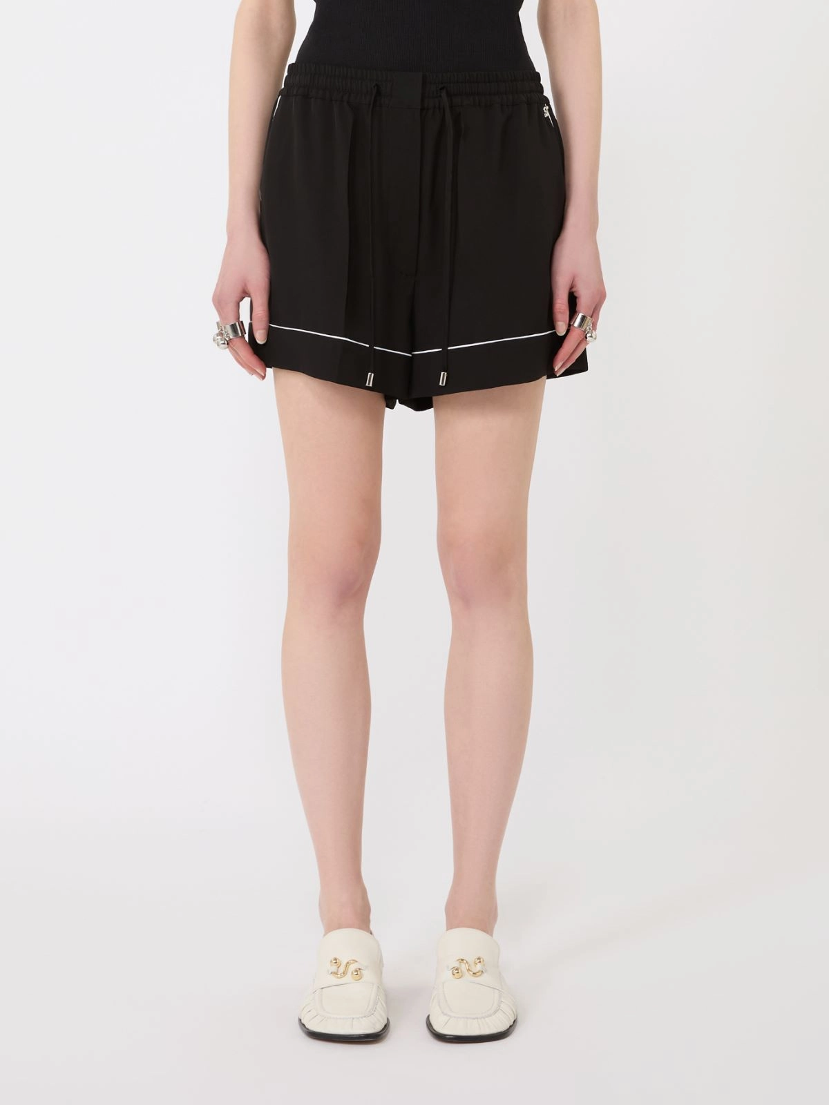 - 메탈 팁 드로스트링 디테일의 허리 밴딩