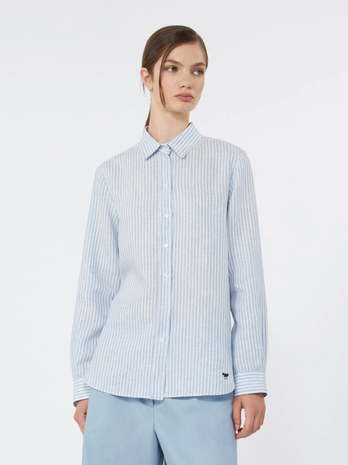 퓨어 린넨 캔버스 소재의 셔츠로, 클래식 카라, 긴소매, 둥근 밑단, 플리츠가 더해진 뒷면 요크가 특징입니다. 밑단에는 자수 로고 디테일이 더해졌으며, 단추 여밈의 스트레이트 핏 디자인입니다.