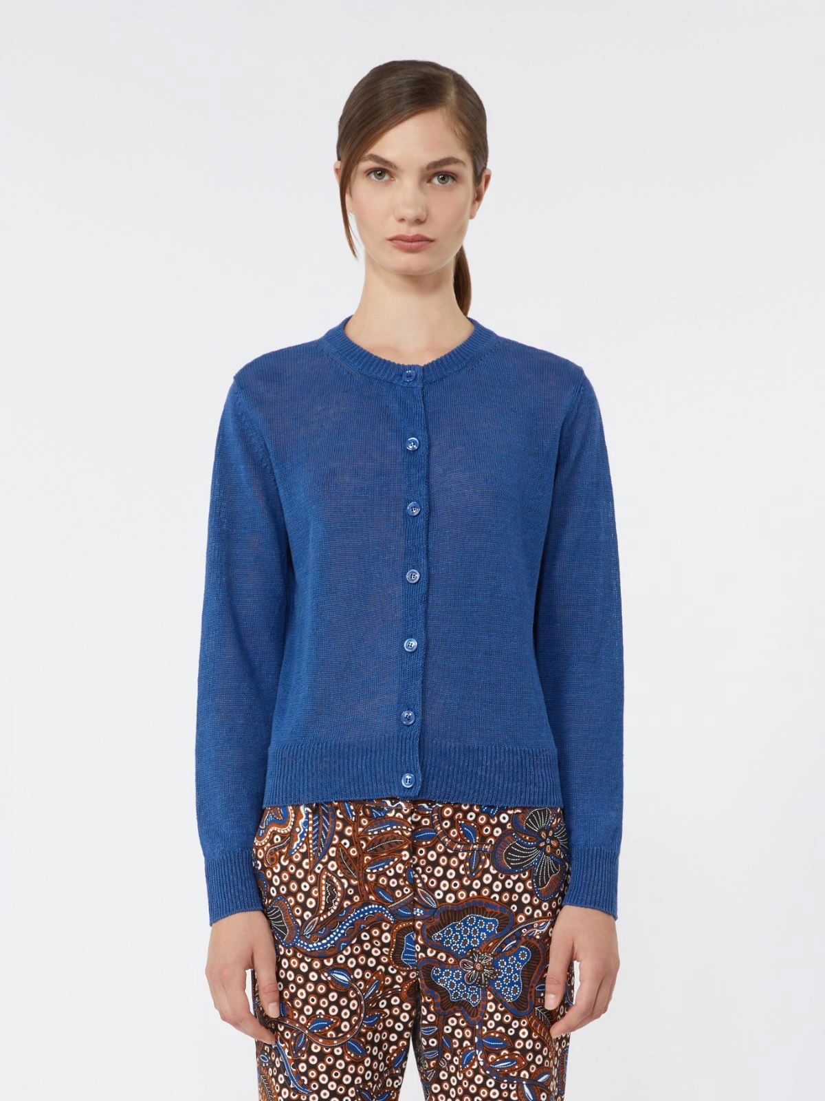 립 조직의 퓨어 린넨 가디건으로, 크루 넥라인과 긴소매가 더해졌습니다. 단추 여밈의 여유로운 핏입니다.