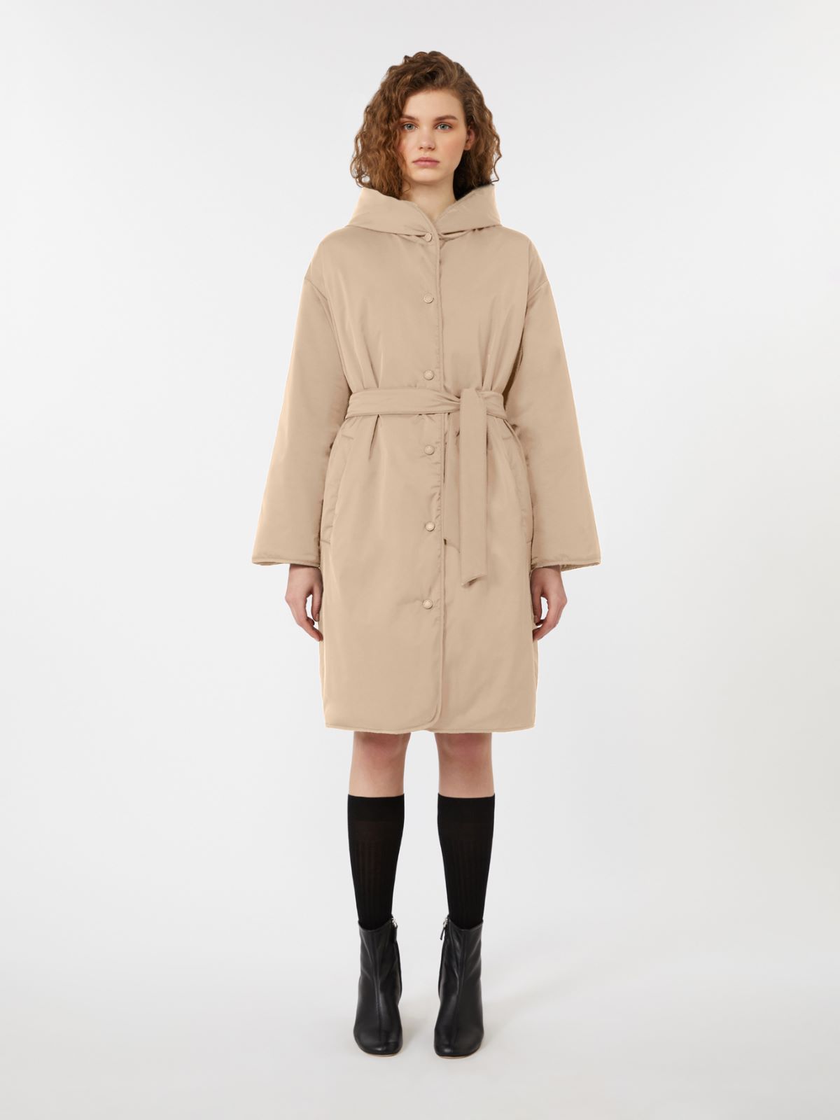 퀼팅 안감이 더해진 발수 트윌 원단으로 제작된 리버시블 패딩 로브 코트입니다.