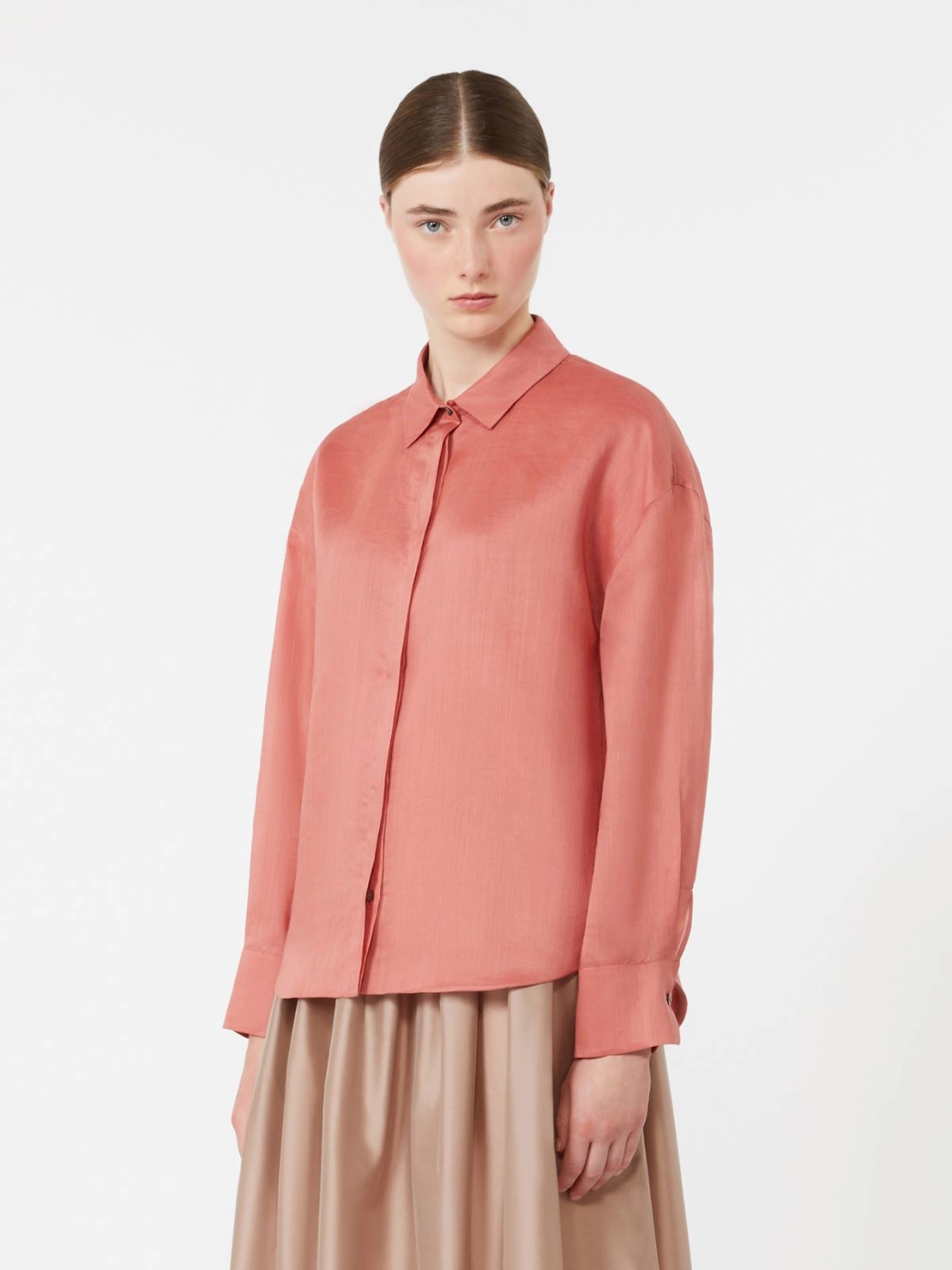 드롭 숄더와 컴포트 핏 디자인의 긴소매 셔츠입니다.
