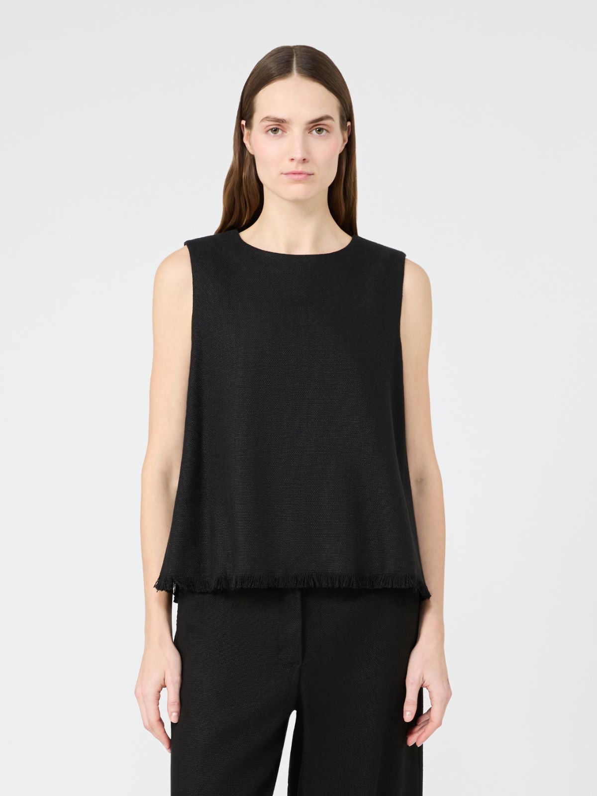 아니카 린넨 탑 - Black