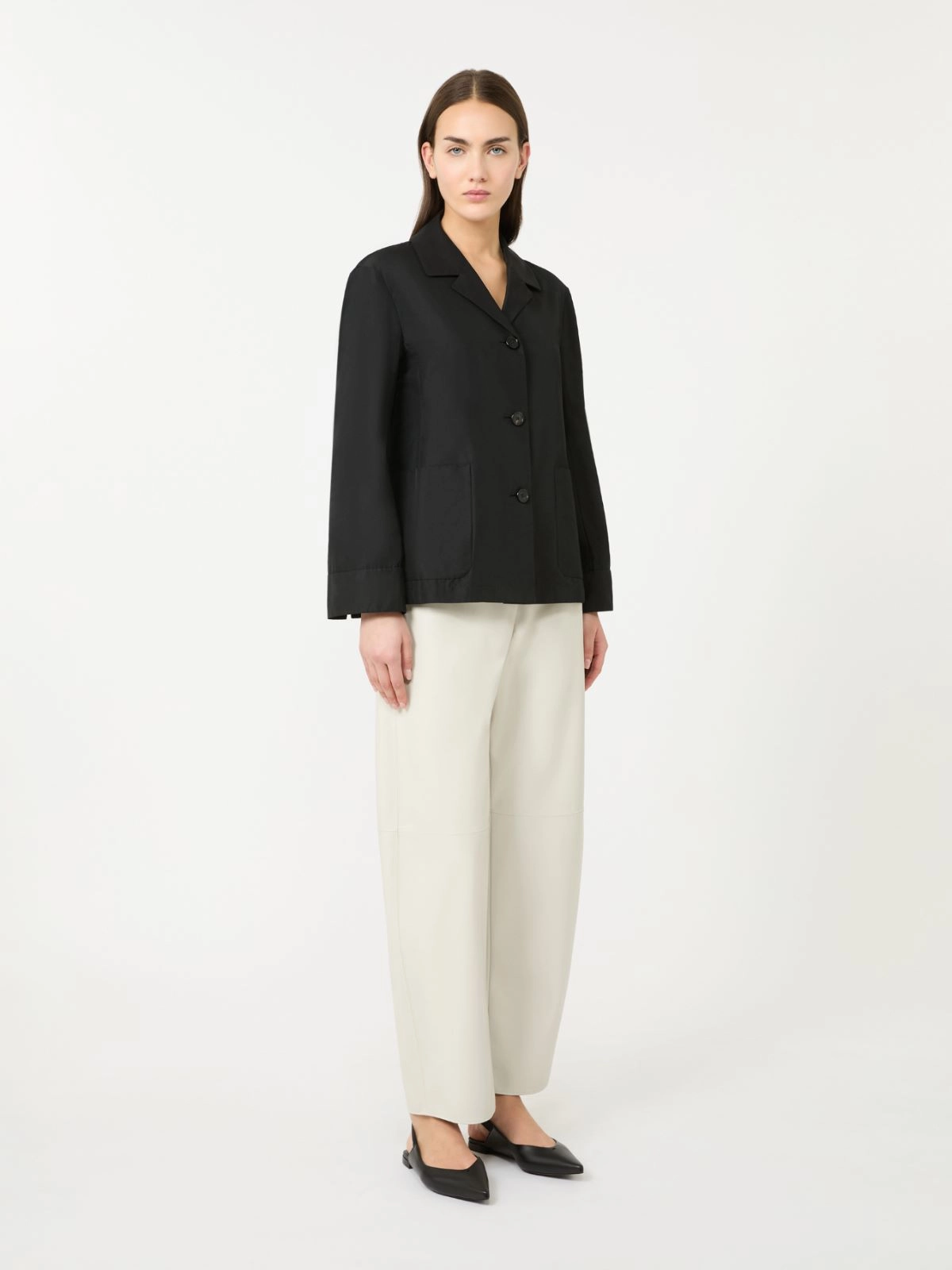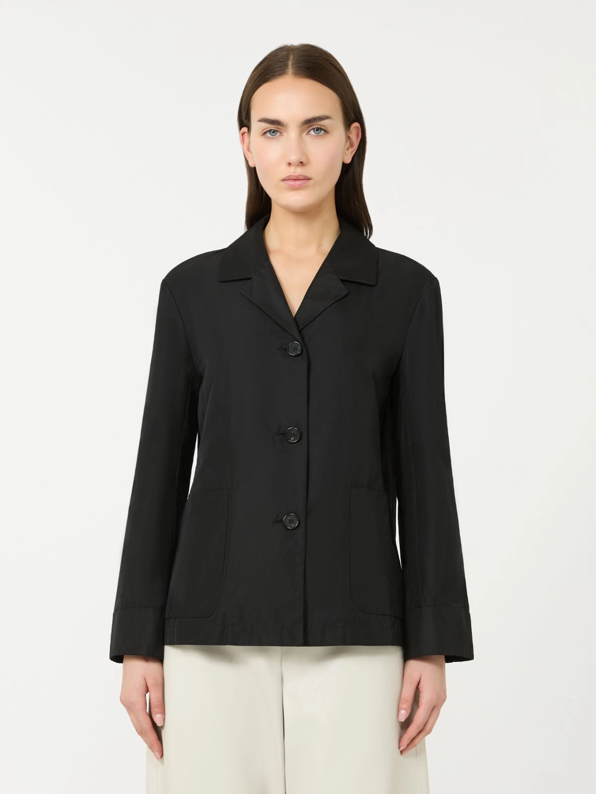 앞면 패치 포켓이 더해진 싱글 브레스티드 자켓입니다.